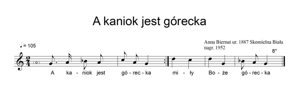 Pieśń o tematyce żydowskiej, z wątkiem antysemickim. Śpiewaczka podała, że zaprezentowany przez nią repertuar nie jest już śpiewany w Skomielnej (1952 r.).