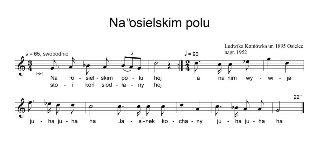 2. Wywija, wywija hej, drobne listy pisze, hej