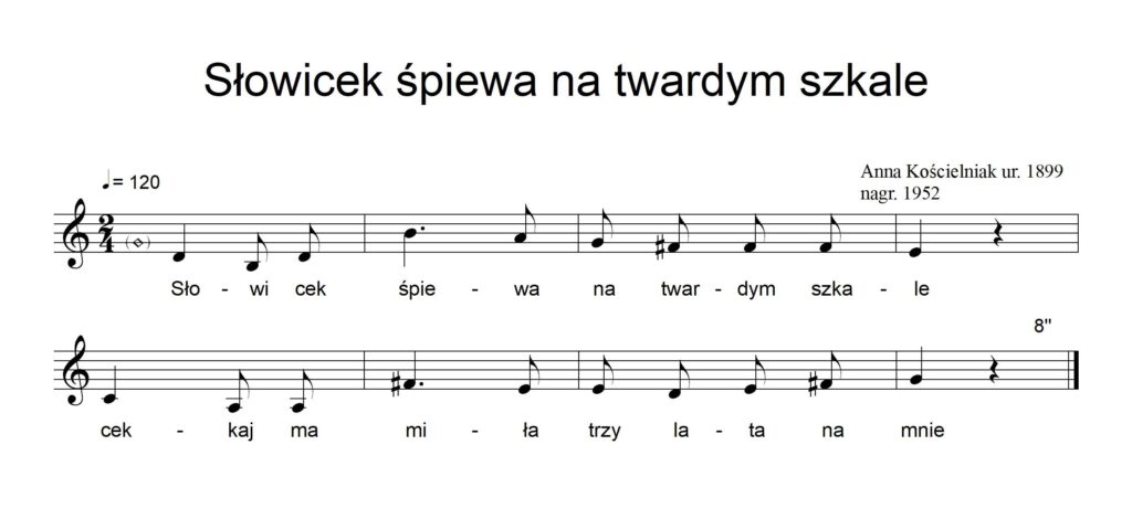 * Być może incypit pieśni został zaśpiewany z błędem („twardym szkale” – zamiast „twardej skale”)